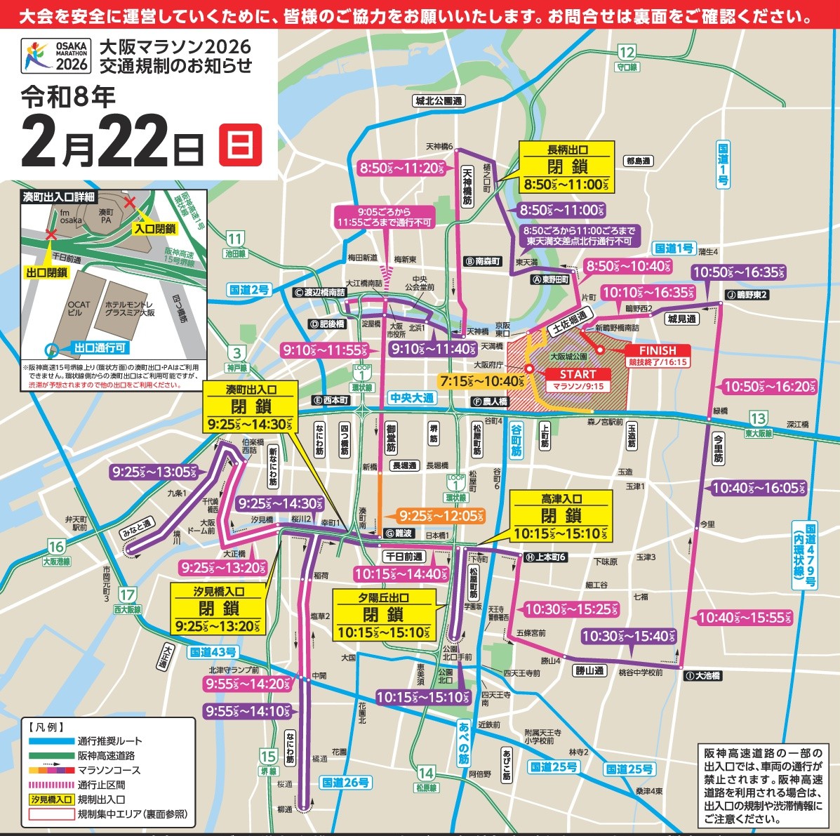 結果的に千日前通り西向きはひどい渋滞だったので良かったのですが、案内の交通規制区域外でも規制があるのは要注意ということです。
