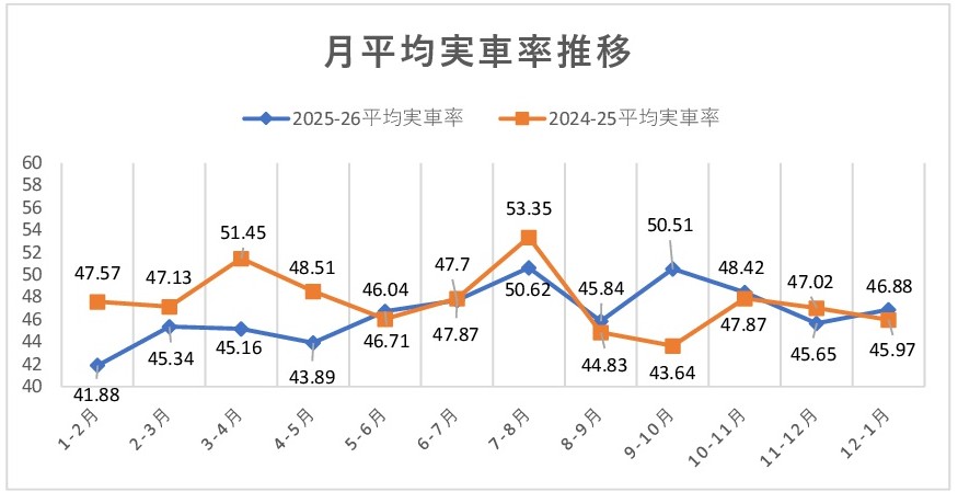 - 実車率の低下: 50%を超えていた数値が40%を切る日も。